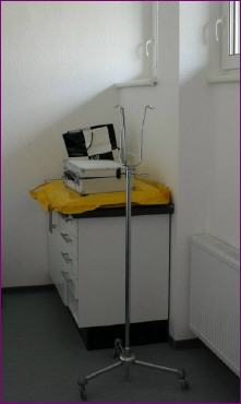 Der OP-Bereich besteht aus drei Räumen, der Vorbereitung mit Zahnbehandlungseinheit, dem eigentlichen OP und dem Aufwachraum.