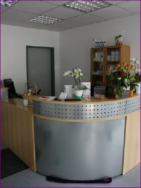 An der Rezeption werden Sie begrüßt und die Daten der Patienten aufgenommen.